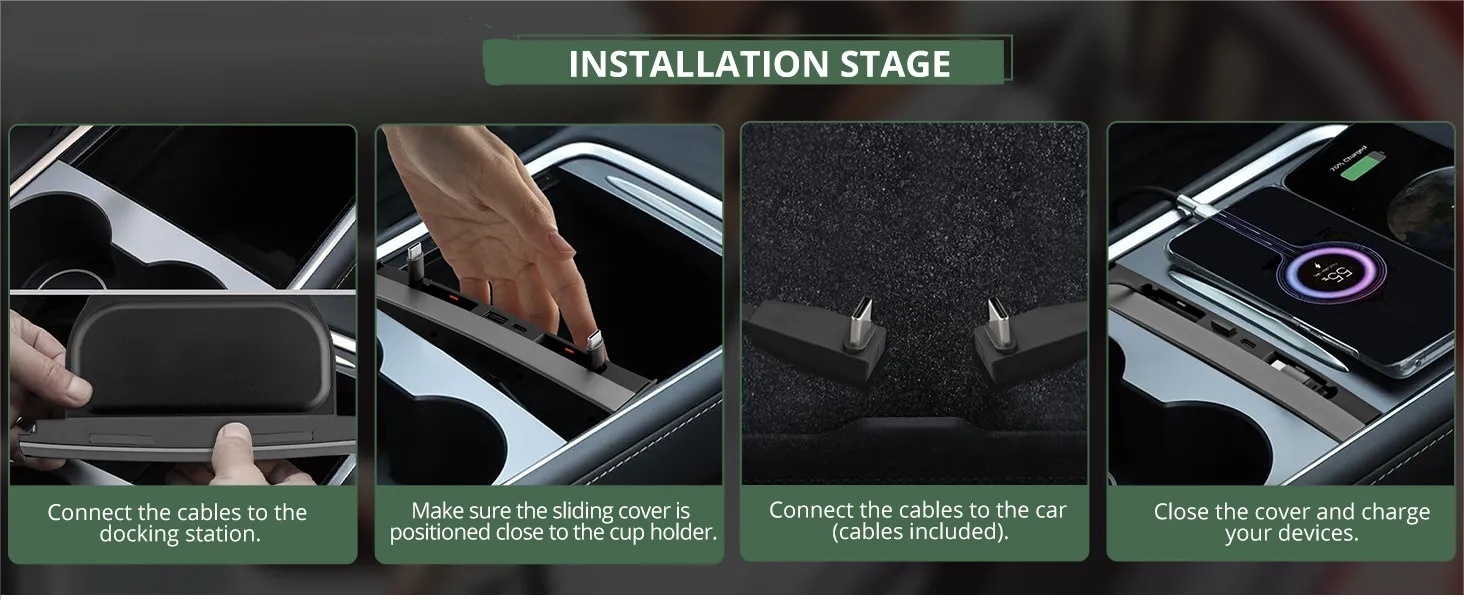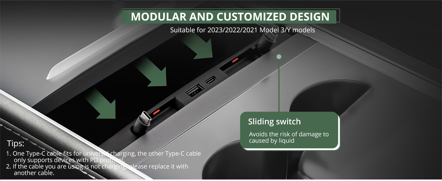 Teslula Retractable USB Hub for Tesla Model3/Y-Fast Charge&Slide Cover