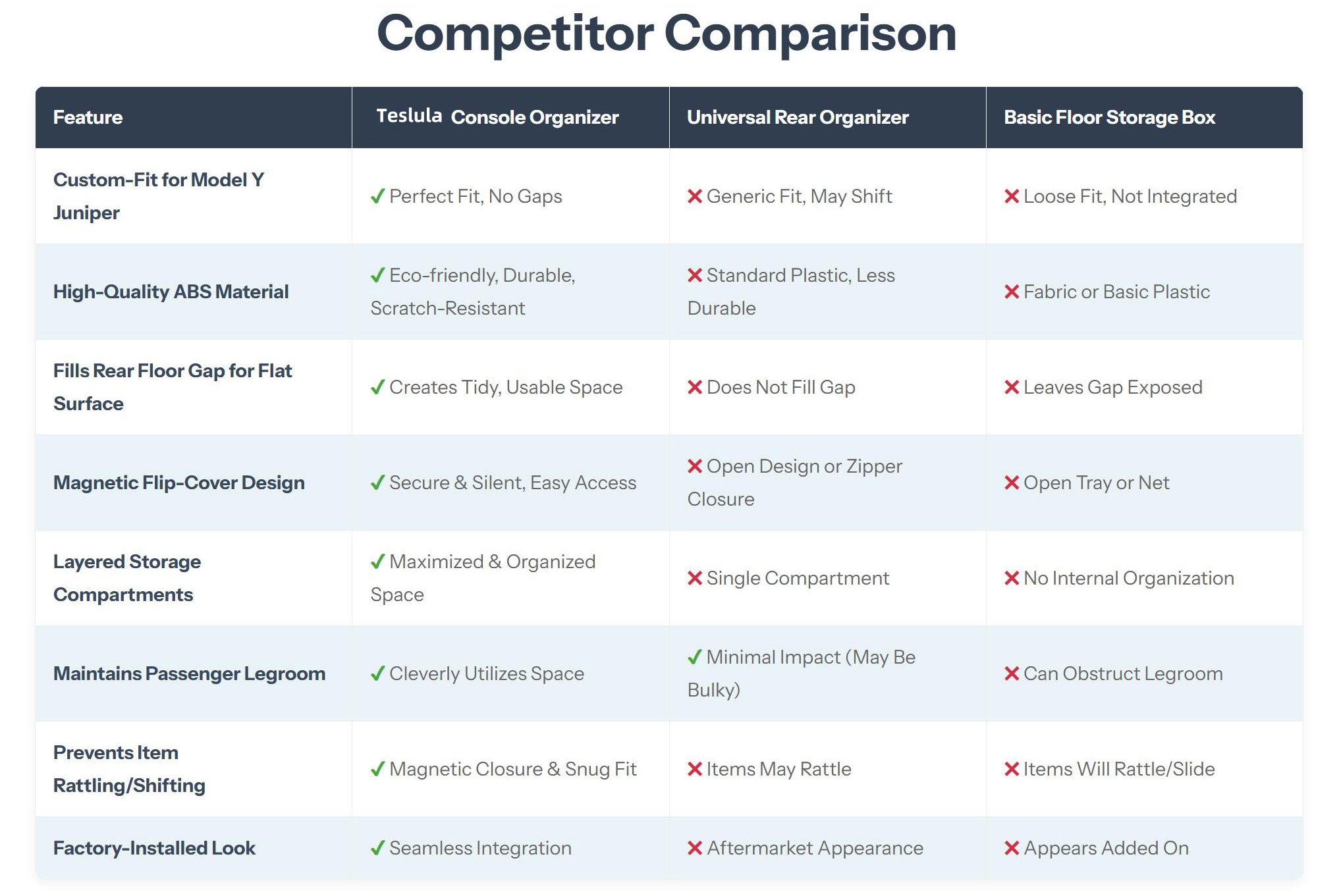 Teslula Rear Center Console Organizer for Model Y Juniper - Storage Expansion